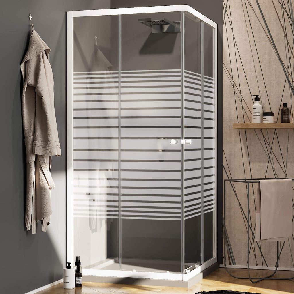 Box Doccia Angolare 90x90 cm 2 Ante Scorrevoli in Cristallo Serigrafato H185 Fosterberg Tonder Bianco