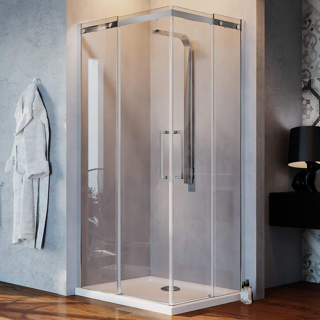Box Doccia Angolare 2 Ante Scorrevoli in Cristallo Trasparente 8mm H200 Fosterberg Horsens Varie Misure