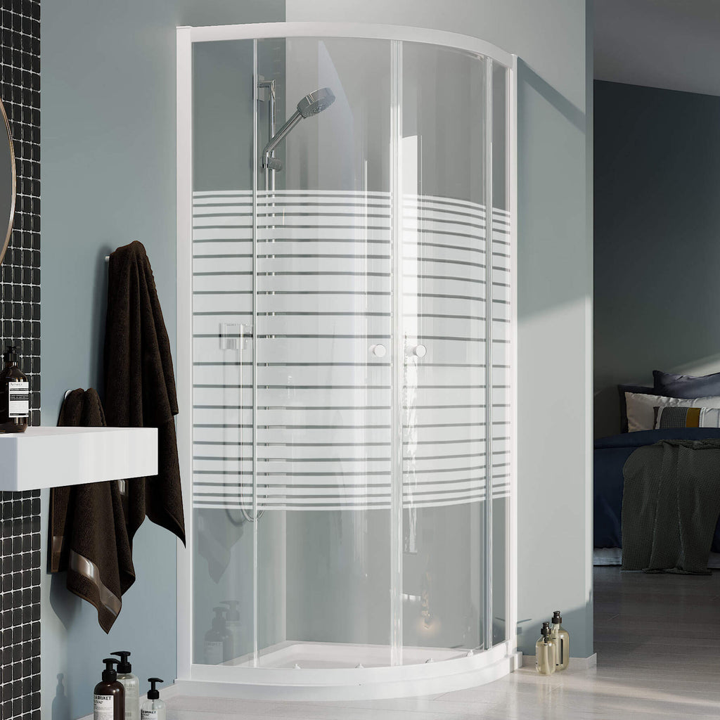 Box Doccia Semicircolare 80x80 cm 2 Ante Scorrevoli in Cristallo Serigrafato H185 Fosterberg Tonder Bianco