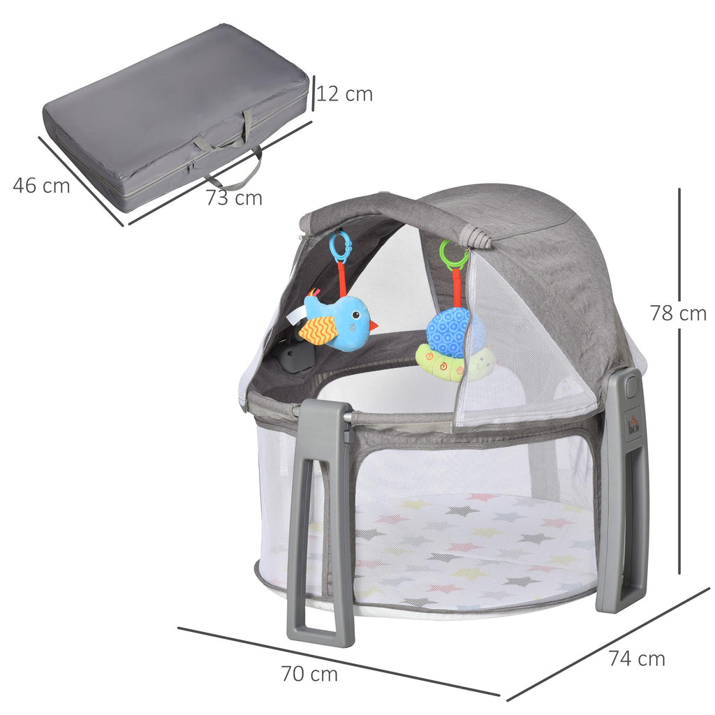 Box Neonati Portatile Pieghevole 0-12 Mesi con Palestrina Grigio