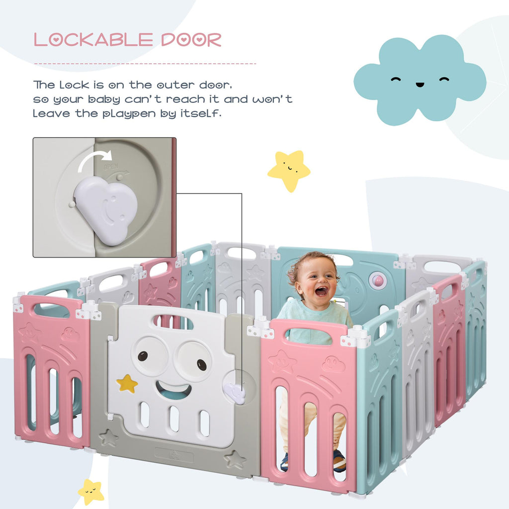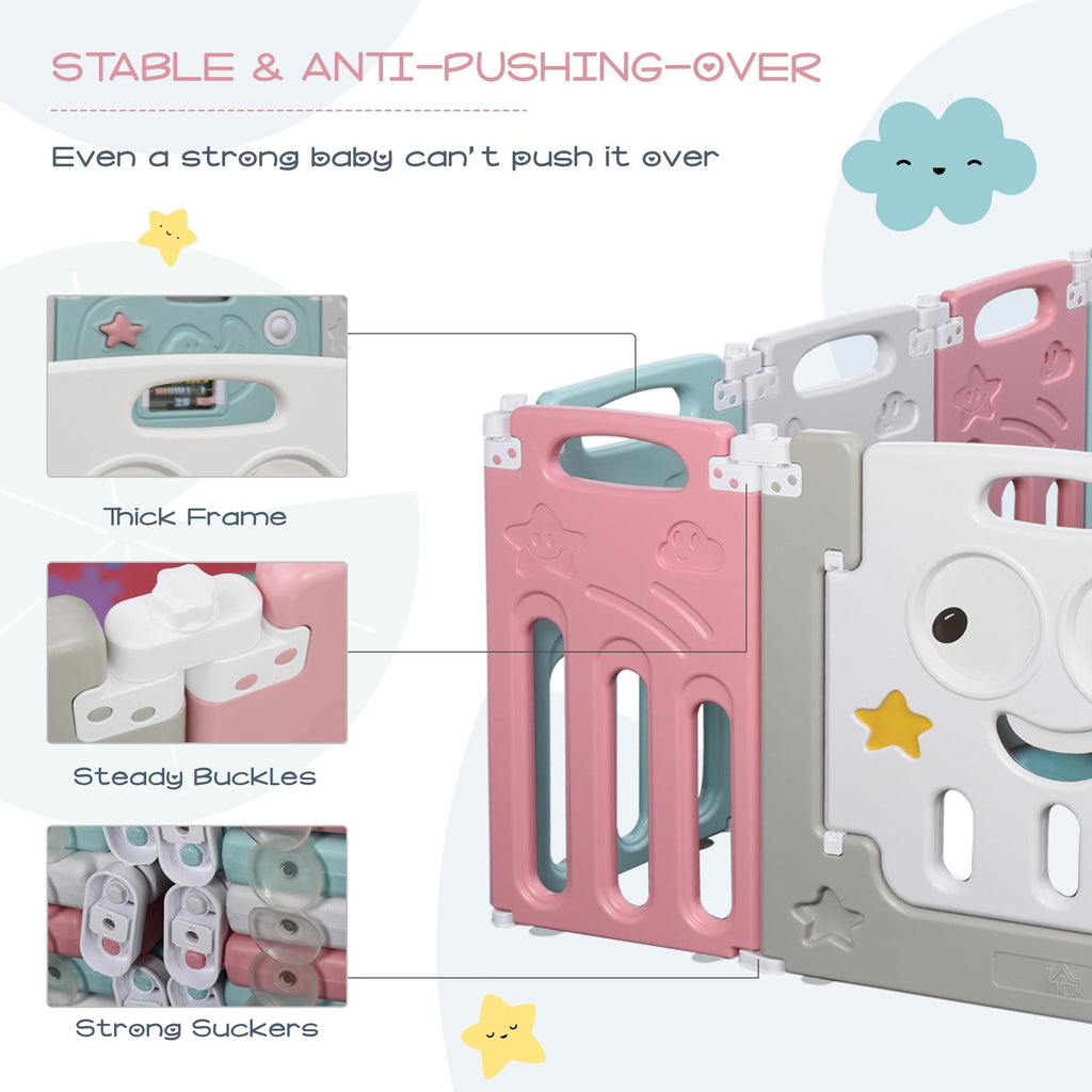Box Recinto Attività per Bambini 149x155x64 cm in Plastica Azzurro Bianco e Rosa