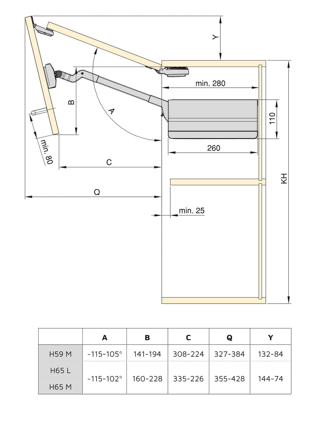 Kit braccetto per doppio porte sollevabile di armadi superiori con frontali divisi, ideale per l'installazione in cucina e mobili per la Casa. Si distingue per il suo funzionamento fluido e preciso, non ha bisogno di alcun attrezzo per lo smontaggio della porta grazie al suo facile sistema di aggancio.