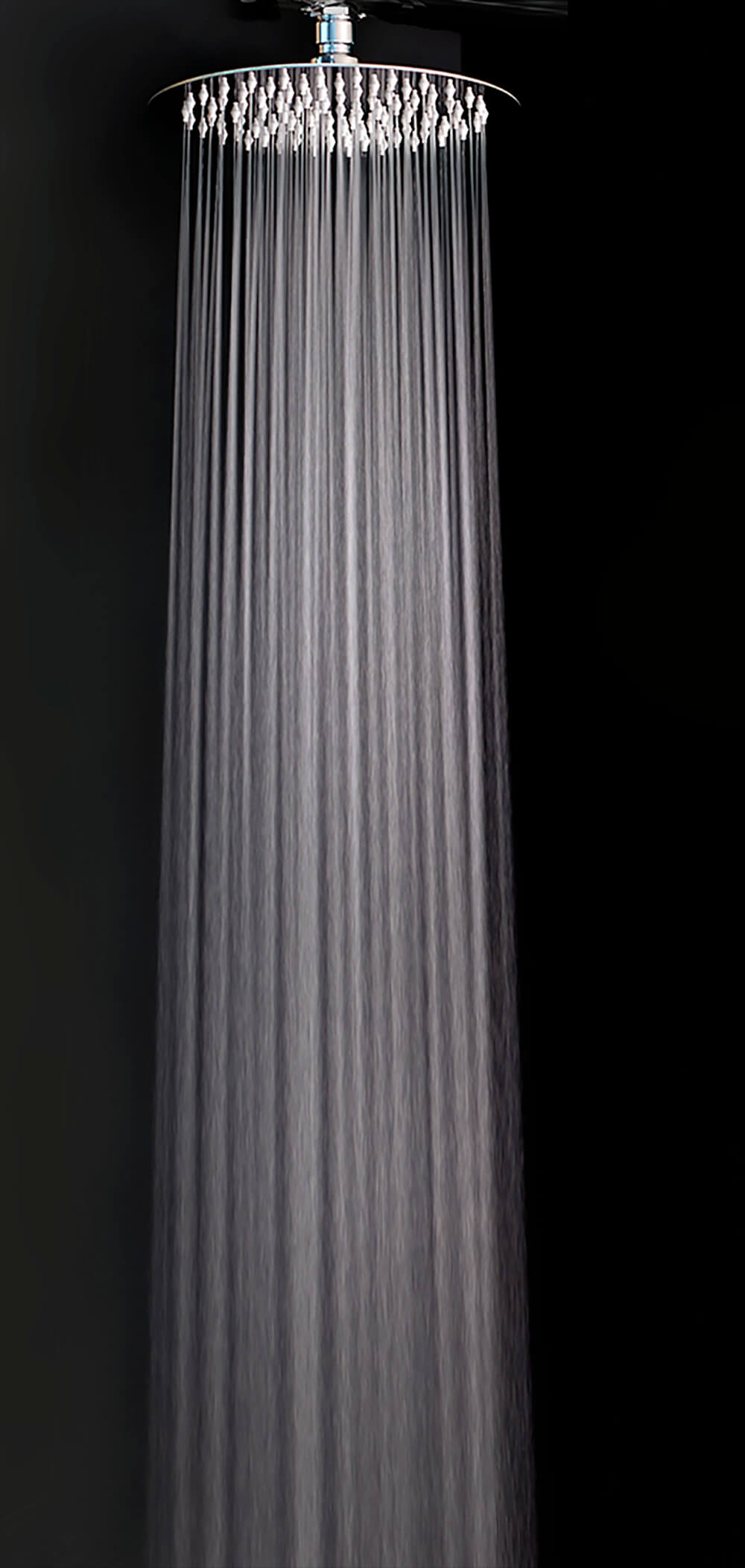 Soffione Doccia Aurora da interno in acciaio inox 304 con braccio realizzato in acciaio inox AISI 316L lucido.