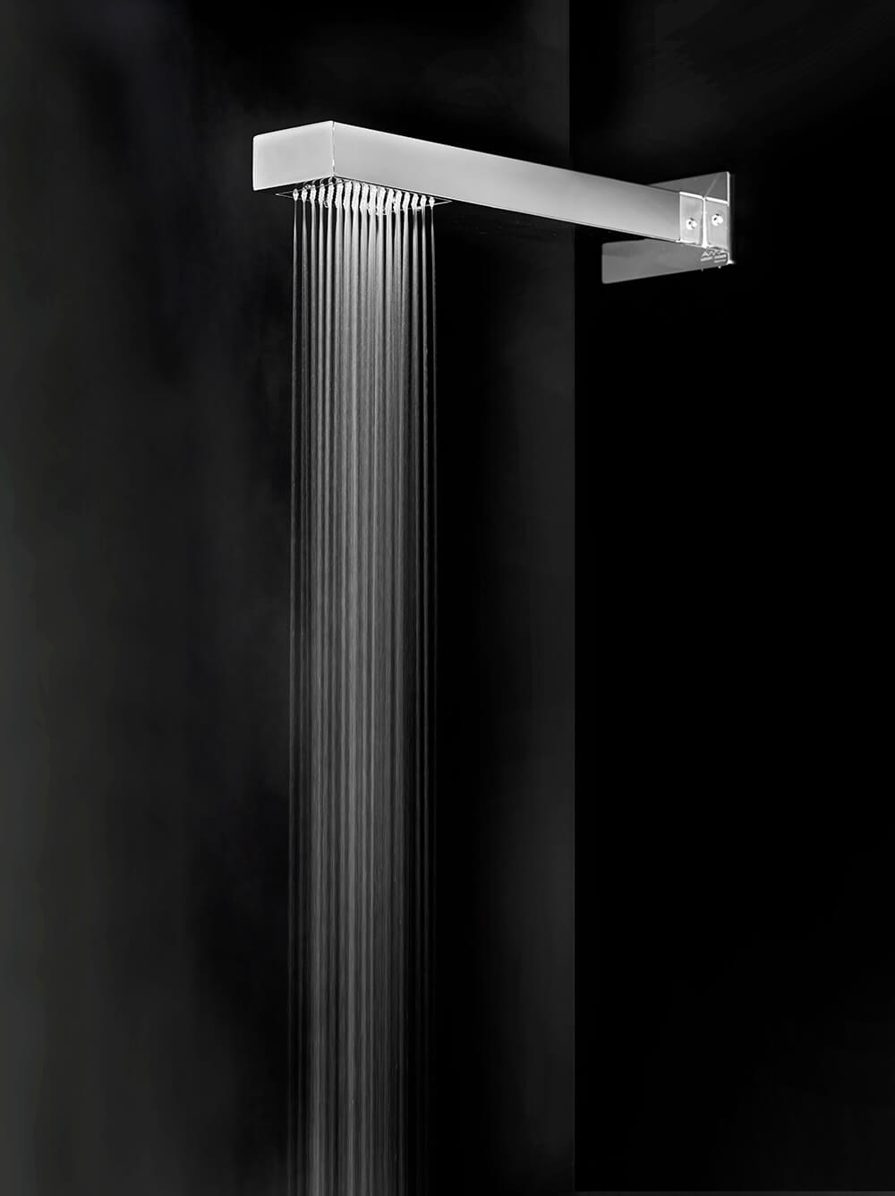 Soffione Doccia a Incasso con braccio realizzato in acciaio inox AISI 316L lucido.