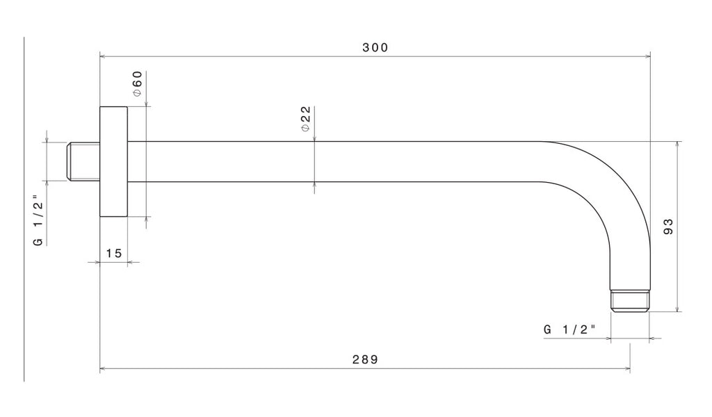 Braccio soffione a parete tondo da 30 cm in acciaio inox satinato. Risparmio idrico, design essenziale, visione tutta italiana. Indicato per docci.