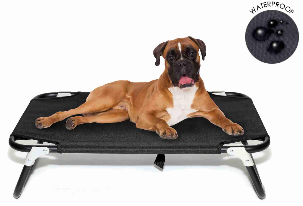 Brandina pieghevole per cani e gatti. Il tessuto permette di far passare l'aria da sotto e attraverso la brandina. Articolo provvisto di apposite cinghie nella parte inferiore che permettono di variare la tenzione del tappeto sul quale staziona il cane in base al peso o in base alla morbidezza che si vuole ottenere. Rimanendo sollevato dal suolo, il cane ha una maggiore ventilazione soprattutto nei mesi estivi.