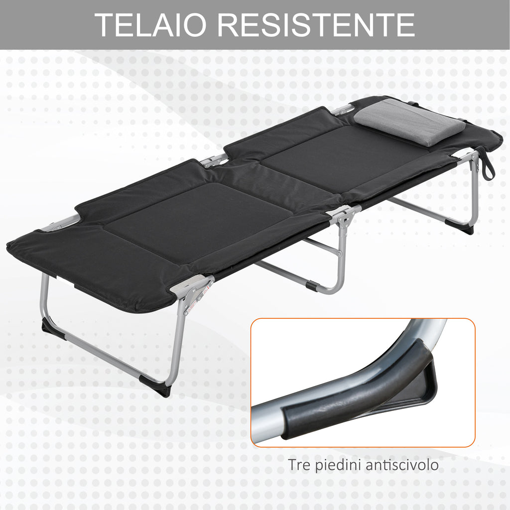Brandina Pieghevole da Campeggio 183x66x33 cm in Metallo e Tessuto Oxford Imbottito Nero