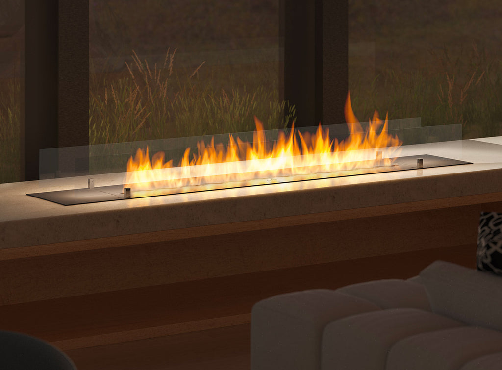 Bruciatore a Bioetanolo dotato di un sistema di ventilazione che impedisce l'accumulo di pressione sotto il bruciatore in caso di trabocco del combustibile. Un ulteriore serbatoio sotto il bruciatore garantisce maggiore sicurezza in caso di fuoriuscita di combustibile dal biocamino.