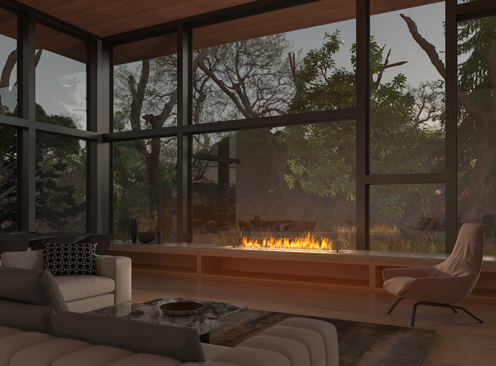 L'inserto in fibra ceramica insieme alla rete aumenta la sicurezza, oltre a prolungare e ottimizzare il processo di combustione. La barra scorrevole consente di regolare la dimensione della fiamma e spegnere il camino in sicurezza, e la forma dell'onda crea un ulteriore effetto 3D.