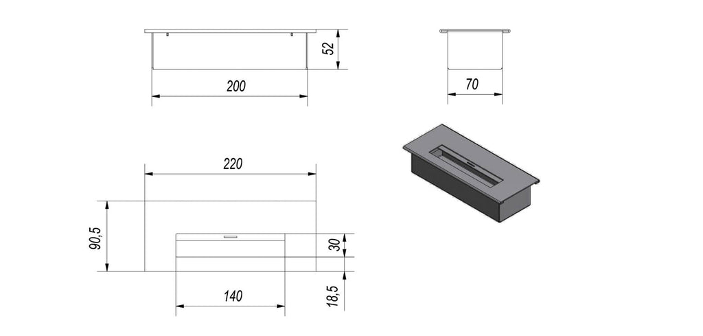 Caratteristiche Tecniche Bruciatore a Bioetanolo per Camini 0.2L 5x20x7cm Flig Burner Small