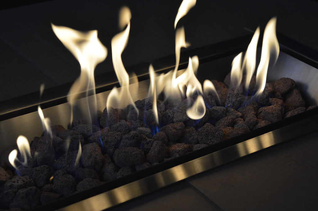 - Dotazione: copertura in acciao, vetri antivento, rocce di lava, legna, sassi in vetro