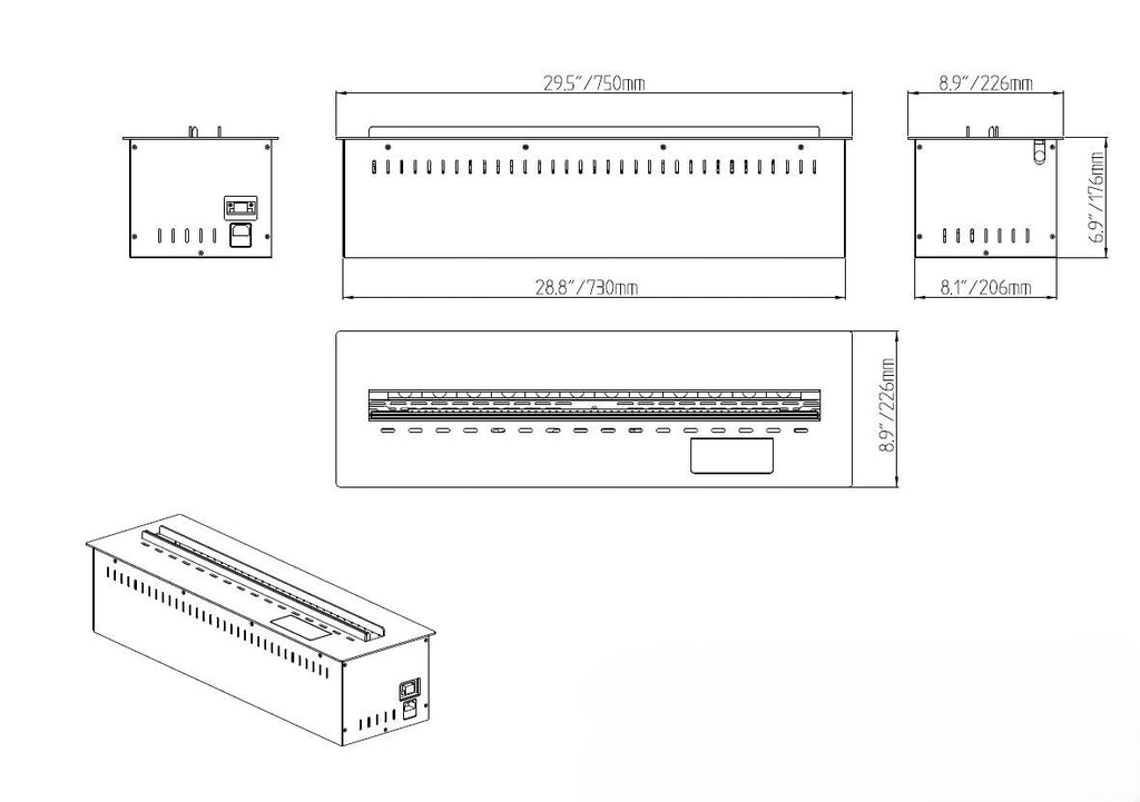 Bruciatore Camino Elettrico a Vapore Acqueo 3D Smart App Inserto Da Incasso 100 Pro-Line