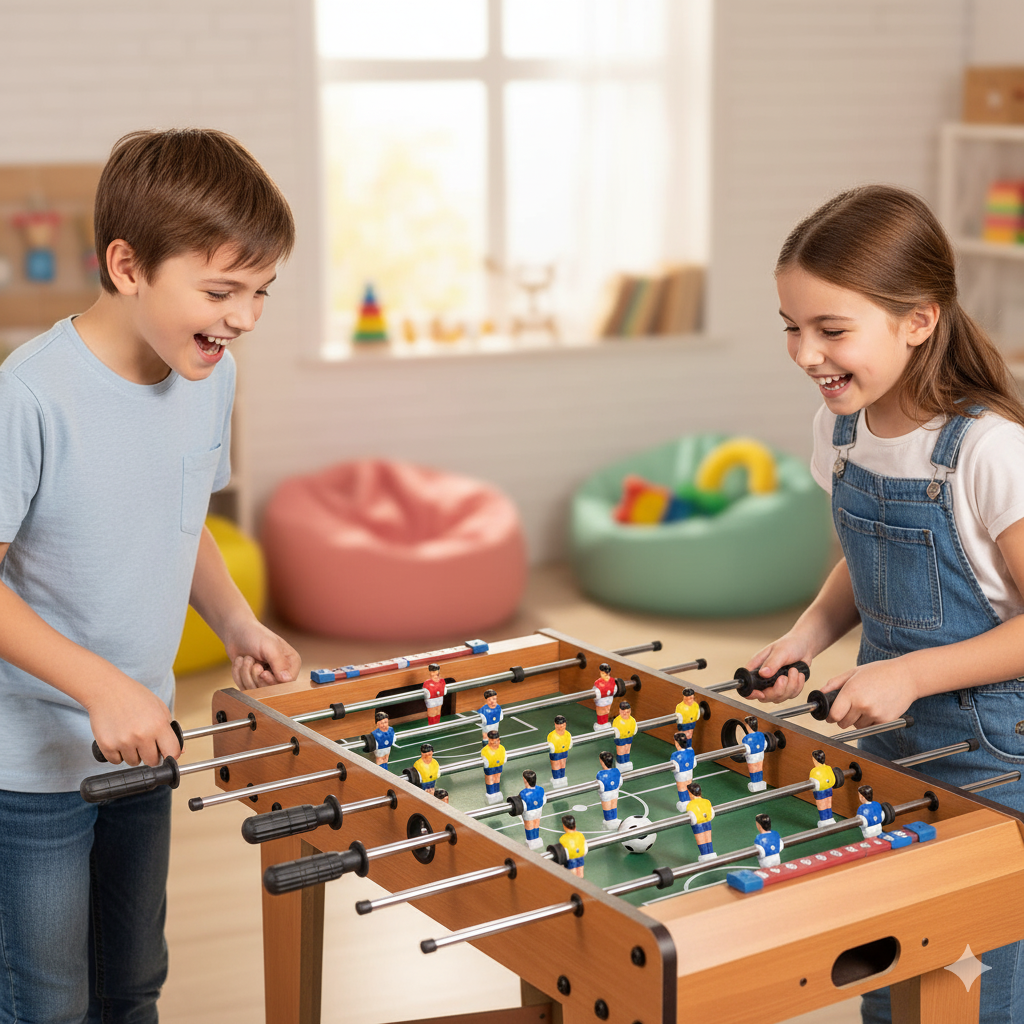 - Calciobalilla in Mdf adatto per 3vs3, con aste passanti e segnapunti incluso
