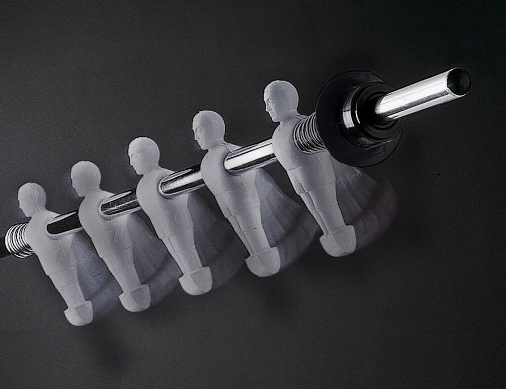 I cuscinetti a sfera in acciaio all?interno delle boccole migliorano notevolmente la scorrevolezza delle aste: aumenta la velocità, e quindi la piacevolezza, del gioco, mentre diminuiscono le sollecitazioni ai polsi dei giocatori.