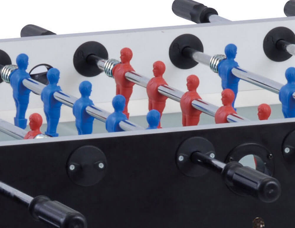 Ometti monocolore in materiale plastico indistruttibile (moplen) rappresentanti una figura umana stilizzata, fissati alle aste con stampaggio diretto: non si spostano, non si muovono, mantengono perfettamente la posizione. Colori delle squadre: blu / rosso.
