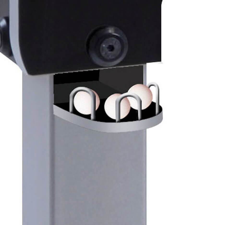 Recupero palline in goal semplice e immediato da due uscite palline in corrispondenza delle gambe.