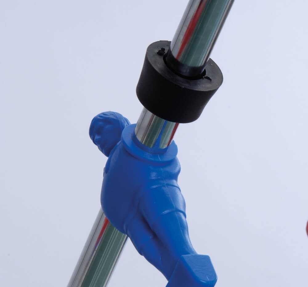 I cuscinetti a sfera in acciaio allinterno delle boccole migliorano notevolmente la scorrevolezza delle aste: aumentano la velocità e la piacevolezza del gioco, diminuiscono le sollecitazioni ai polsi dei giocatori.