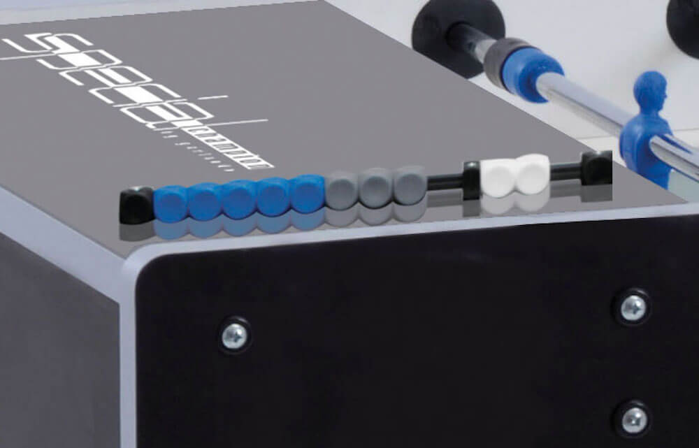 Segnapunti da torneo con indicazione dei set di gioco e dei goal in posizione comoda sul bordo di ciascuna testata.