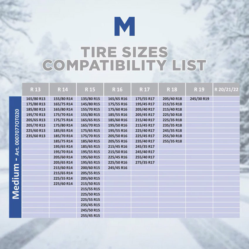 - Idonee anche per veicoli con spazio ridotto tra piantone e pneumatico e quindi non catenabili