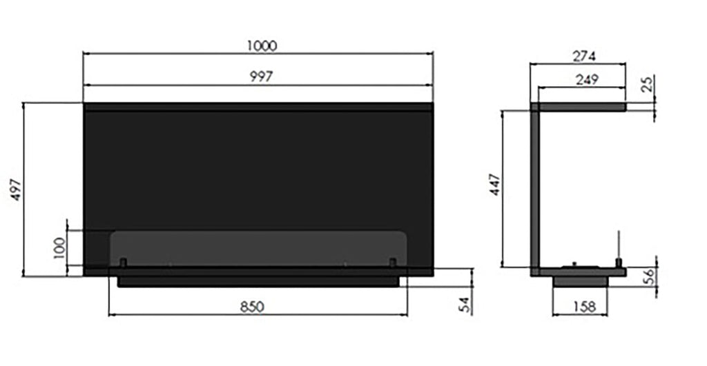 Caratteristiche Tecniche Camino a Bioetanolo da Incasso 100x50x27,5 cm Inside C 1000 V2 Nero con Vetro