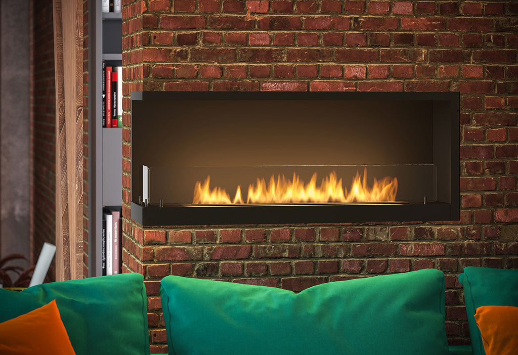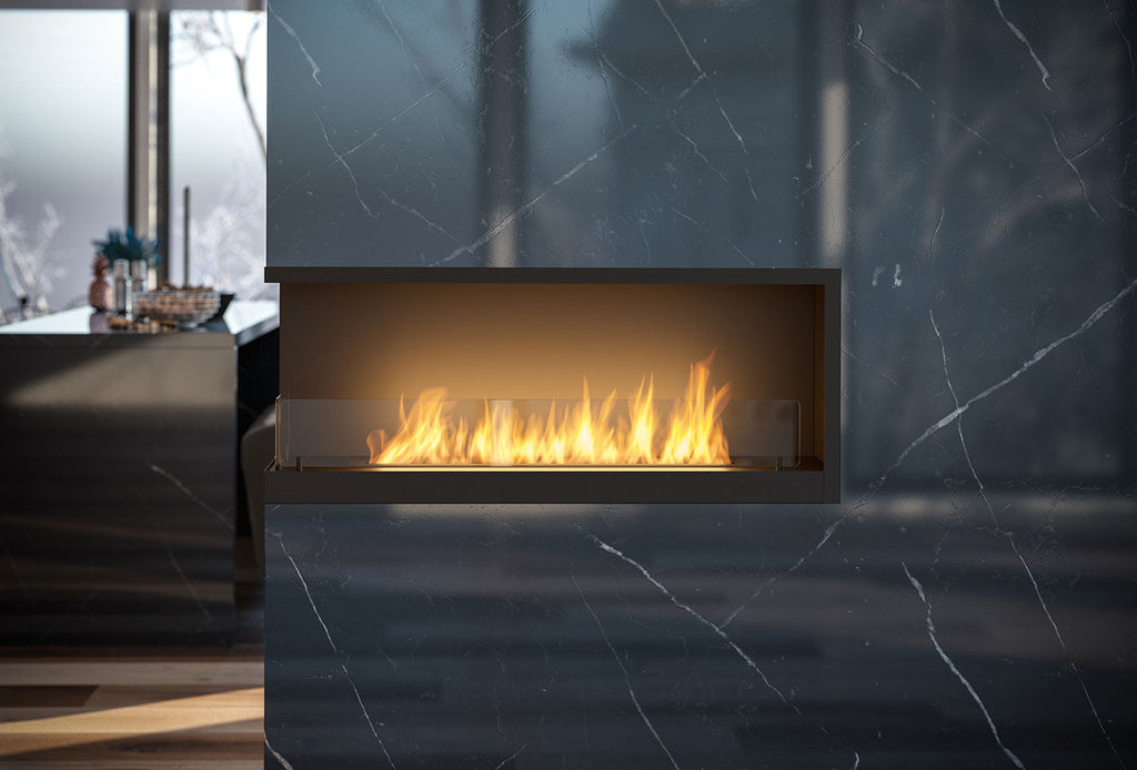 Camino a Bioetanolo da Incasso 110X45X35 cm Inside L1100 V2 Angolo a Sinistra Nero con Vetro