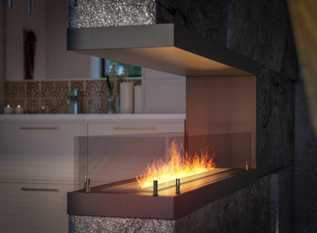 Il modello INSIDE U 1000.2 è un caminetto da installare in una nicchia predisposta. È il più ampio modello integrato disponibile. Il telaio del caminetto è dotato di un sistema di sfiato che impedisce l'accumulo di pressione sotto il bruciatore in caso di tracimazione del combustibile. Il telaio dispone inoltre di 3 lastre infilate in apposite guide, che consentono di nascondere tutti i fissaggi. Il telaio del camino ha anche un isolamento integrato, che ne consente il montaggio sicuro, ad esempio, in strutture in MDF o cartongesso. Il camino può essere un connettore bello ed efficace tra due stanze.