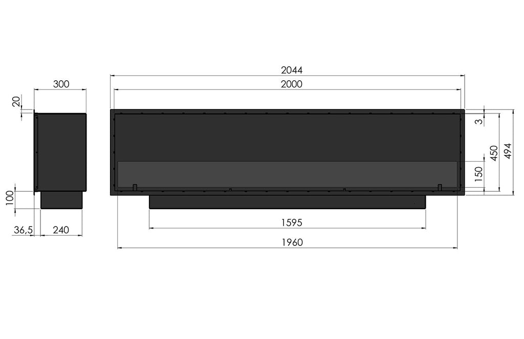 Camino a Bioetanolo da Incasso 204,4x59,4x30 cm Inside 2000 Slim Nero con Vetro