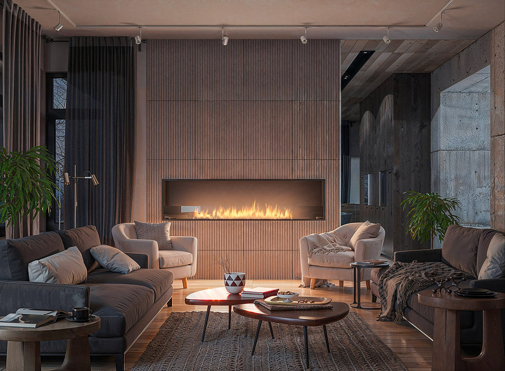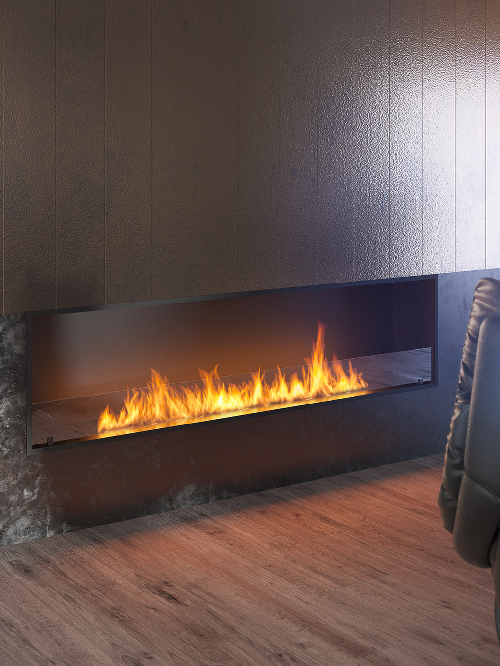 Un inserto in fibra ceramica con rete aumenta la sicurezza, prolunga e ottimizza il processo di combustione. La striscia scorrevole consente di regolare la dimensione della fiamma e spegnere il camino in sicurezza, mentre la forma ad onda crea un ulteriore effetto 3D.