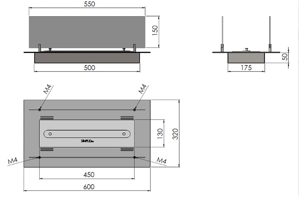 Caratteristiche Tecniche Camino a Bioetanolo da Incasso 60x32x6 cm Insert 600 in Acciaio Inox