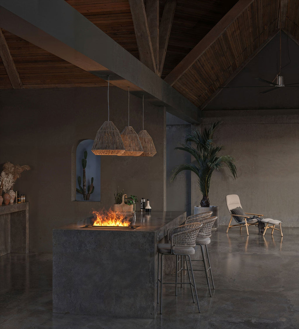Il caminetto Invapo combina il vapore acqueo con la moderna illuminazione a LED, creando effetti di fiamma realistici senza i rischi associati al fuoco reale. Le fiamme sono generate da acqua nebulizzata, illuminate da luci a LED in qualsiasi tonalità di colore scelta.
