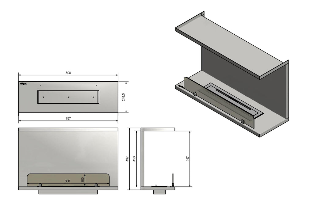 Caratteristiche Tecniche Camino a Bioetanolo da Incasso 80x50x25 cm Inside C 800 V2 Nero con Vetro