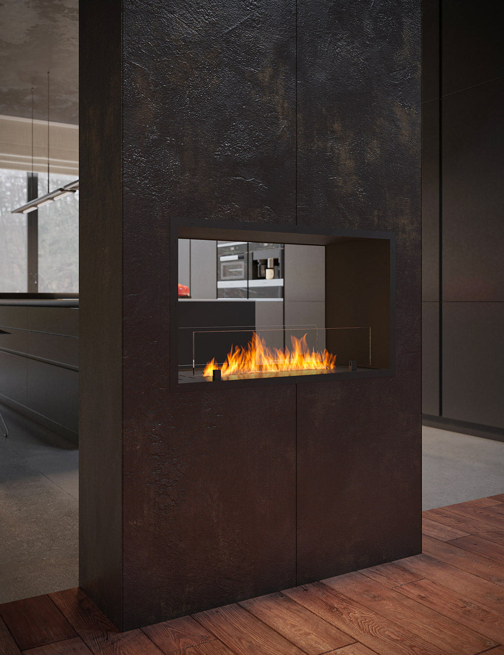 Il biocamino 2 SIDE nella versione SLIM è un elemento di interior design impressionante ed espressivo, e la loro forma verticale e le strette cornici nere conferiscono loro eleganza e un carattere moderno. La natura bifacciale consente un utilizzo funzionale in due stanze adiacenti, creando un'atmosfera accogliente e allo stesso tempo essendo una soluzione pratica per dividere lo spazio, creando un elemento decorativo di grande effetto che dona carattere all'intero interno.