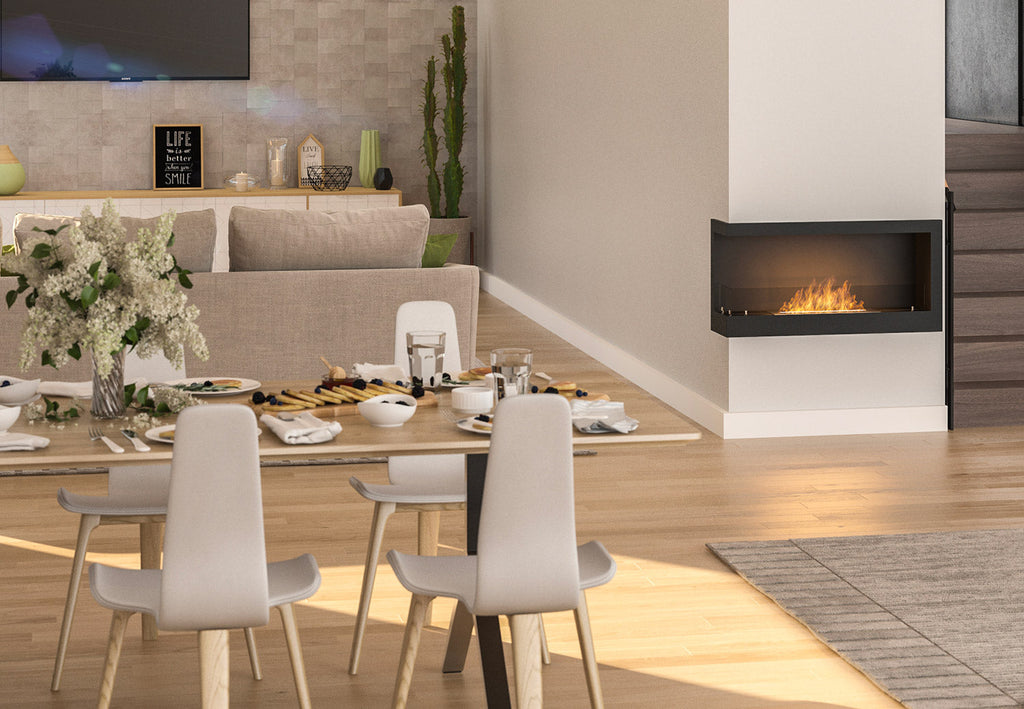 Caratteristiche Tecniche Camino a Bioetanolo da Incasso 90x45x24 cm Corner 900 Left Sinistro Nero con Vetro