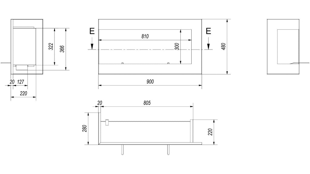 Caratteristiche Tecniche Camino a Bioetanolo da Incasso 90x48x28cm Flig Tampa Nero con Vetro Angolo a Sinistra