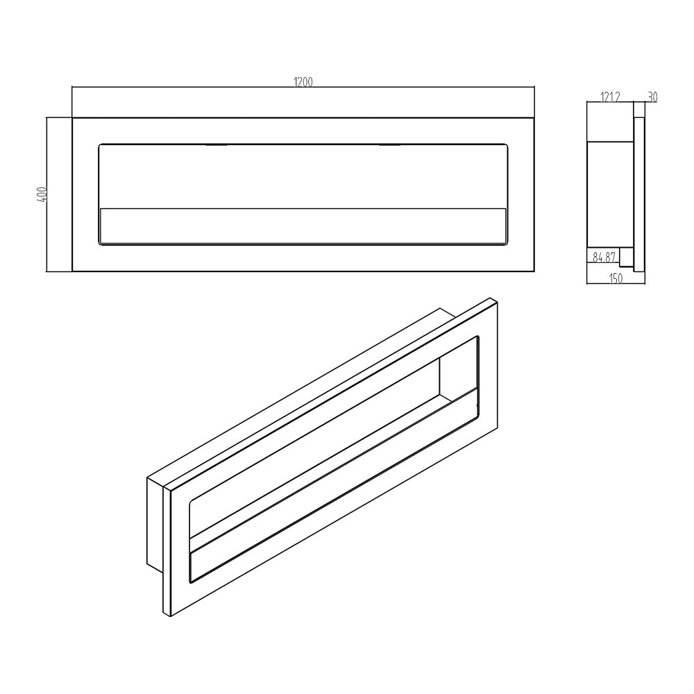Camino a Bioetanolo da Incasso 120x15x40 cm Livorno 120 Nero