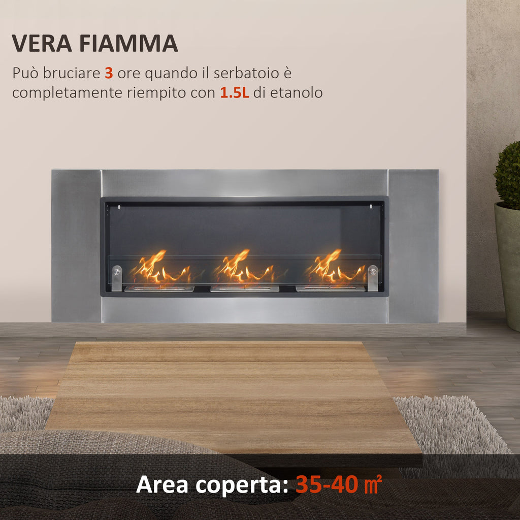 Camino a Bioetanolo da Parete 136x54 cm Inox e Nero