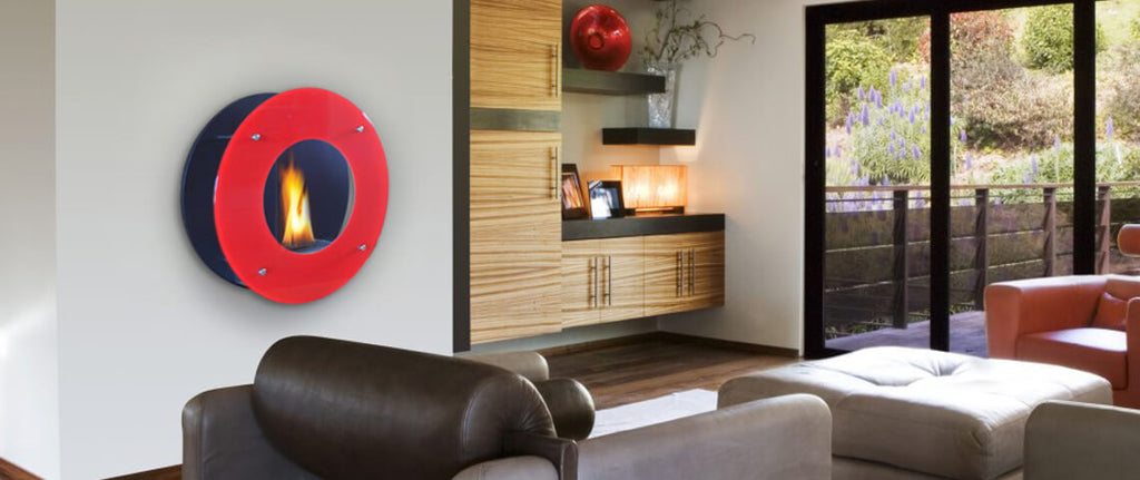 Camino a Bioetanolo da Parete con Cornice in Vetro Ø60x20,4cm Vannini Calatrava Rosso