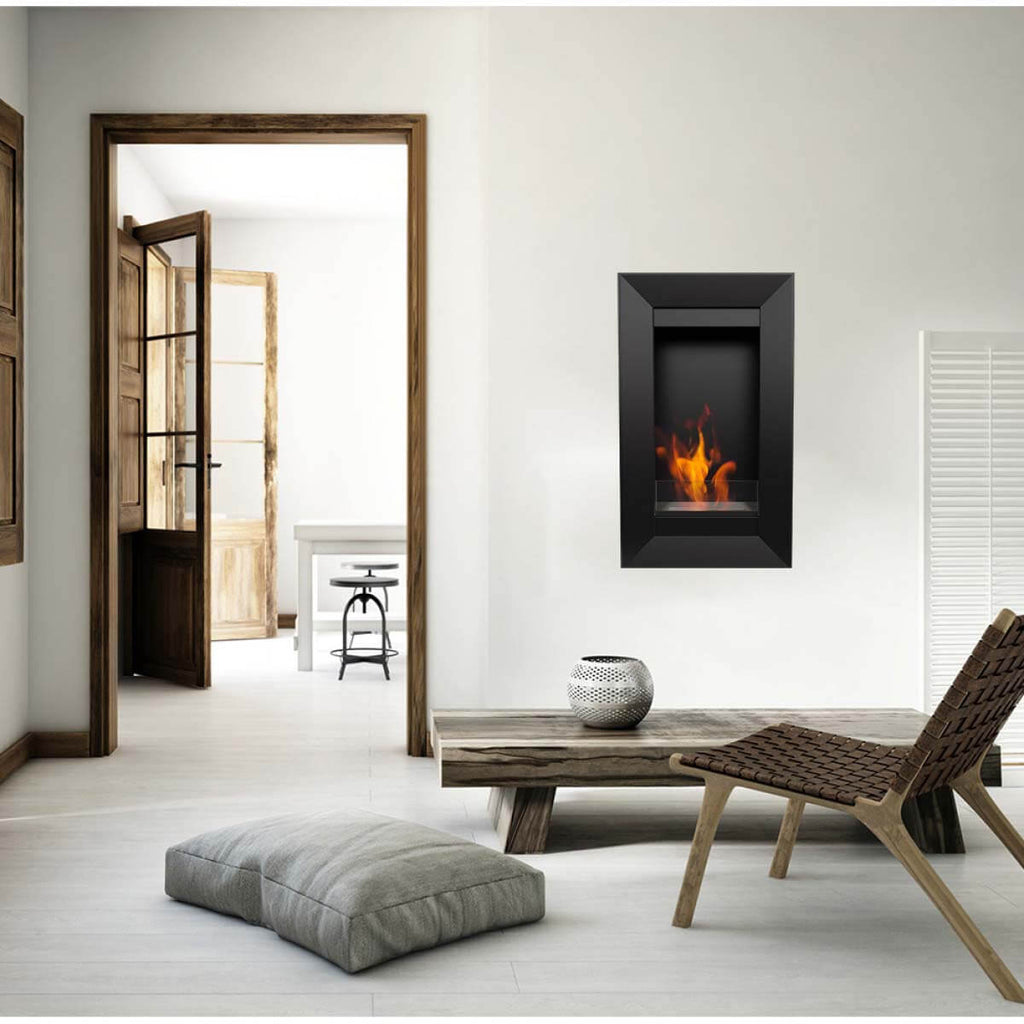 Caminetto a bioetanolo da parete o da incasso. Facile da installare, è possibile montarlo in due modi: incassato nel muro dentro un apposita nicchia, oppure appeso come un quadro tramite gli appositi tasselli. Il suo design lo rende adatto a qualsiasi ambiente. Aggiungendo al bioetanolo qualche goccia di essenza profumata, il biocamino può essere utilizzato anche come diffusore di aromi.