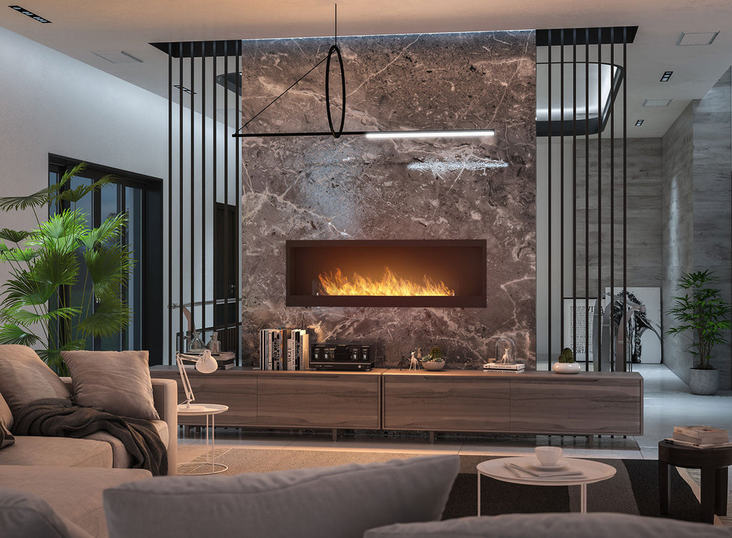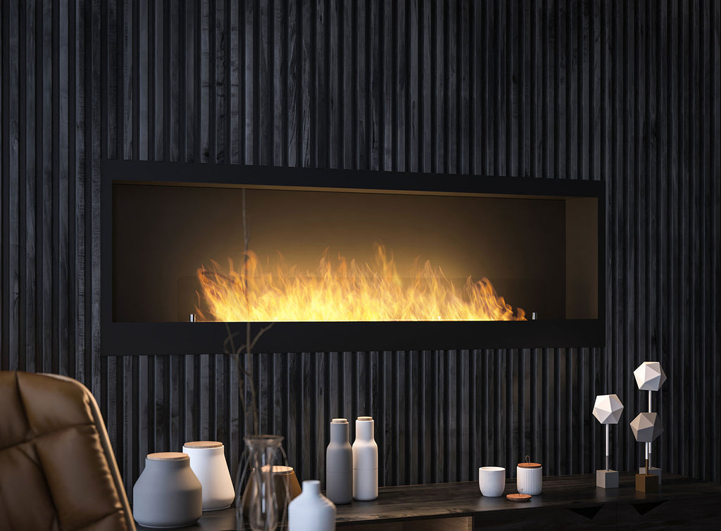 INSIDE 1500 il più grande camino da incasso con un bruciatore da 100 cm con una lunga linea di fuoco.