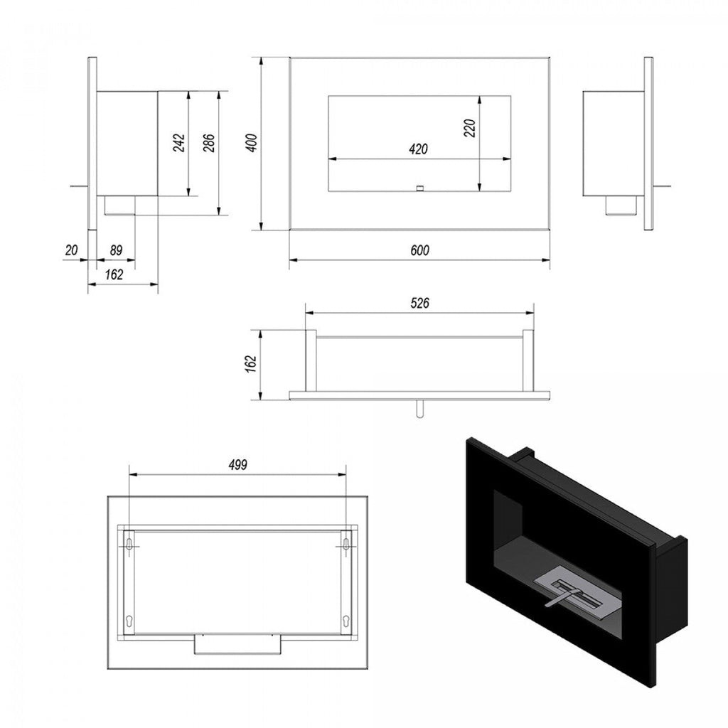 Caminetto a bioetanolo da parete o da incasso. Facile da installare, è possibile montarlo in due modi: incassato nel muro dentro un apposita nicchia, oppure appeso come un quadro tramite gli appositi tasselli. Il suo design lo rende adatto a qualsiasi ambiente. Aggiungendo al bioetanolo qualche goccia di essenza profumata, il biocamino può essere utilizzato anche come diffusore di aromi.