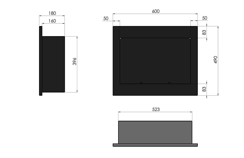Caratteristiche Tecniche Camino a Bioetanolo da Parete/Incasso 60x49x18 cm Frame 600 Nero con Vetro