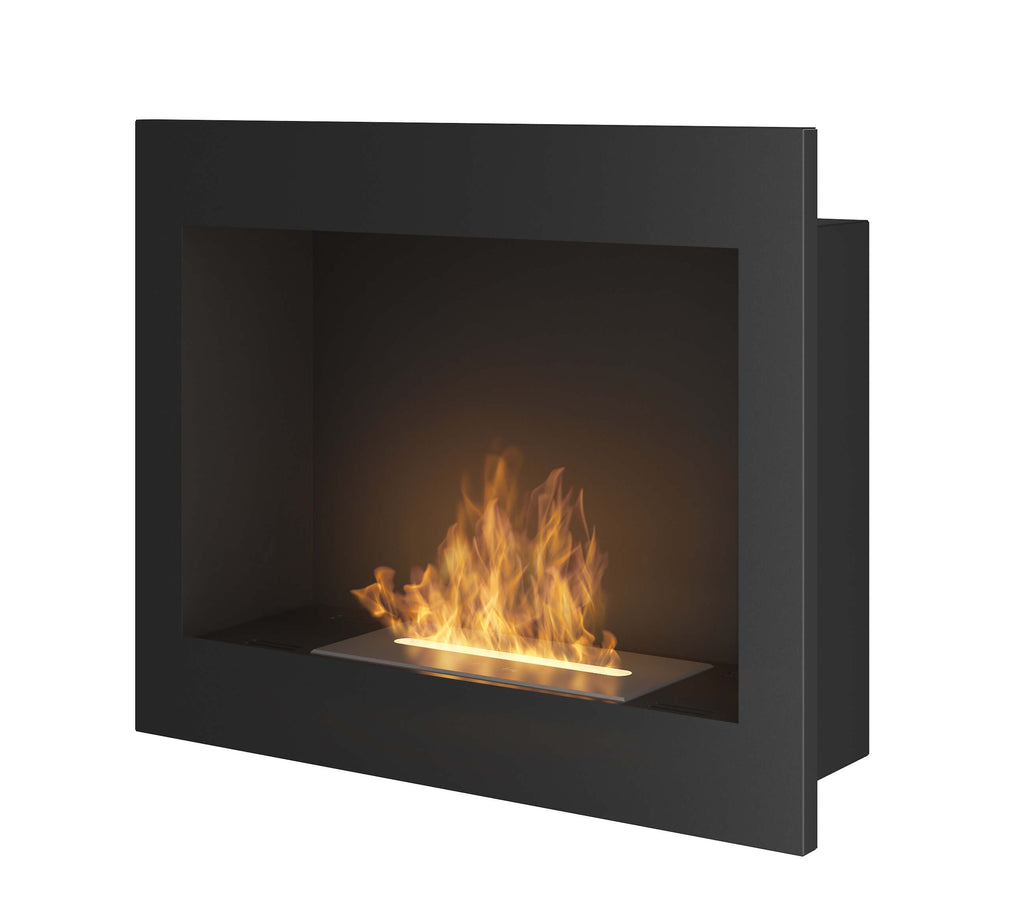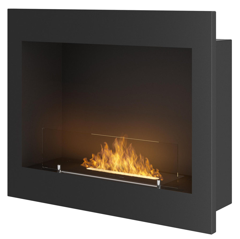 Camino a Bioetanolo da Parete/Incasso 60x49x18 cm Frame 600 Nero con Vetro