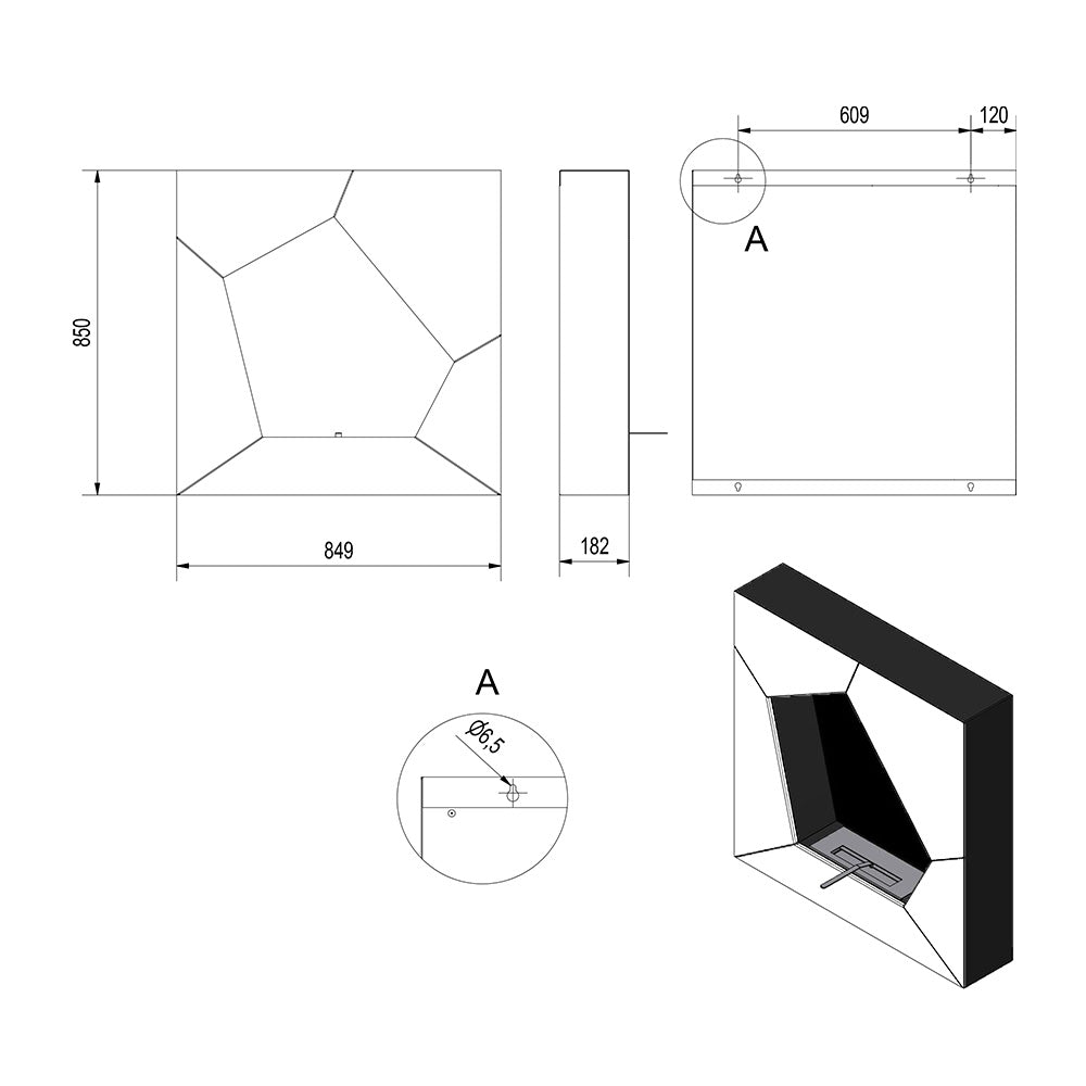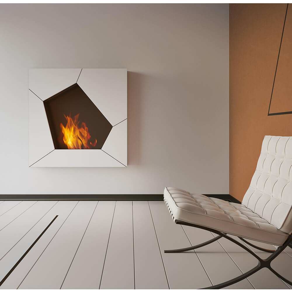 Caminetto a bioetanolo da parete o da incasso. Facile da installare, è possibile montarlo in due modi: incassato nel muro dentro un apposita nicchia, oppure appeso come un quadro tramite gli appositi tasselli. Il suo design lo rende adatto a qualsiasi ambiente. Aggiungendo al bioetanolo qualche goccia di essenza profumata, il biocamino può essere utilizzato anche come diffusore di aromi.