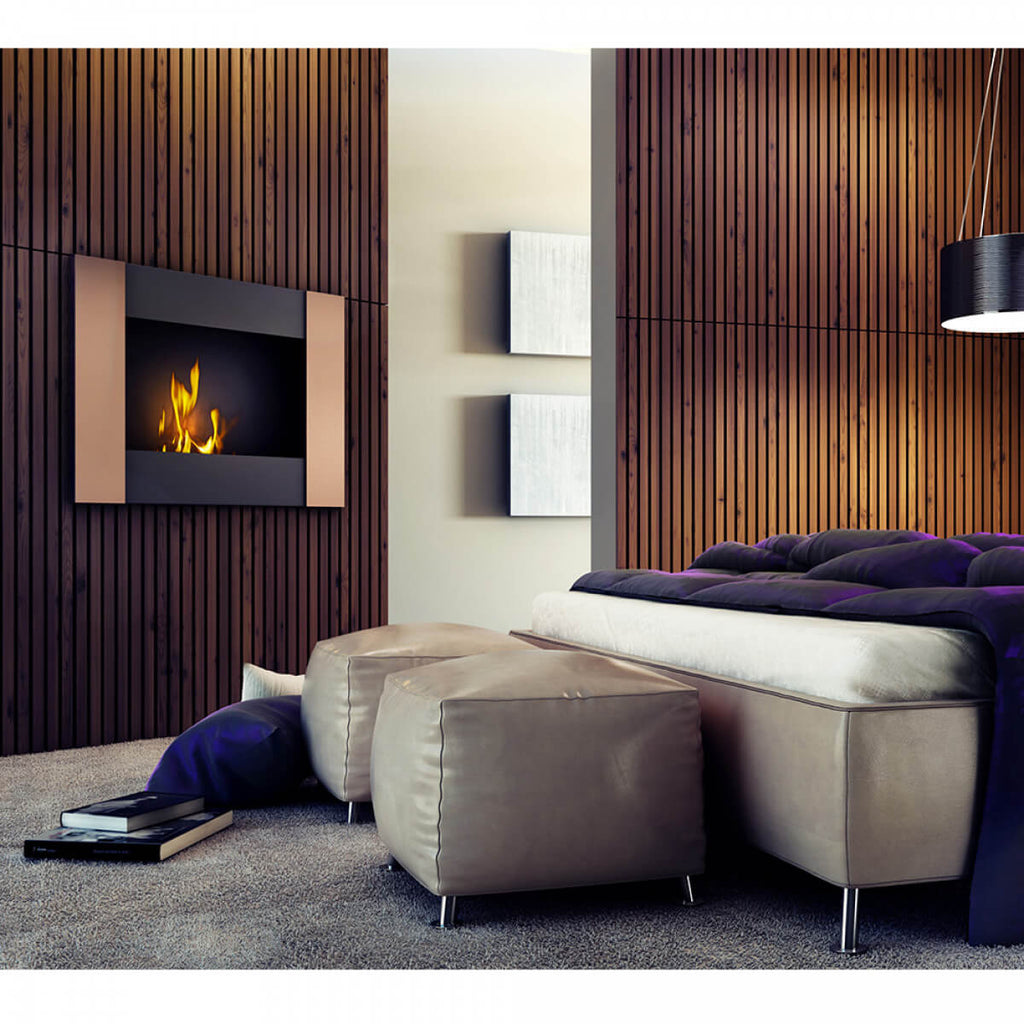 Camino a Bioetanolo da Parete 90,2x65 cm con Vetro Flig Boston 2 Bronzo