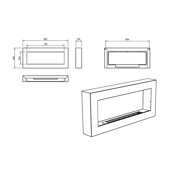 Camino a Bioetanolo da Parete 90x12x40 cm in Acciaio Inox Nero