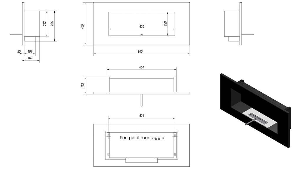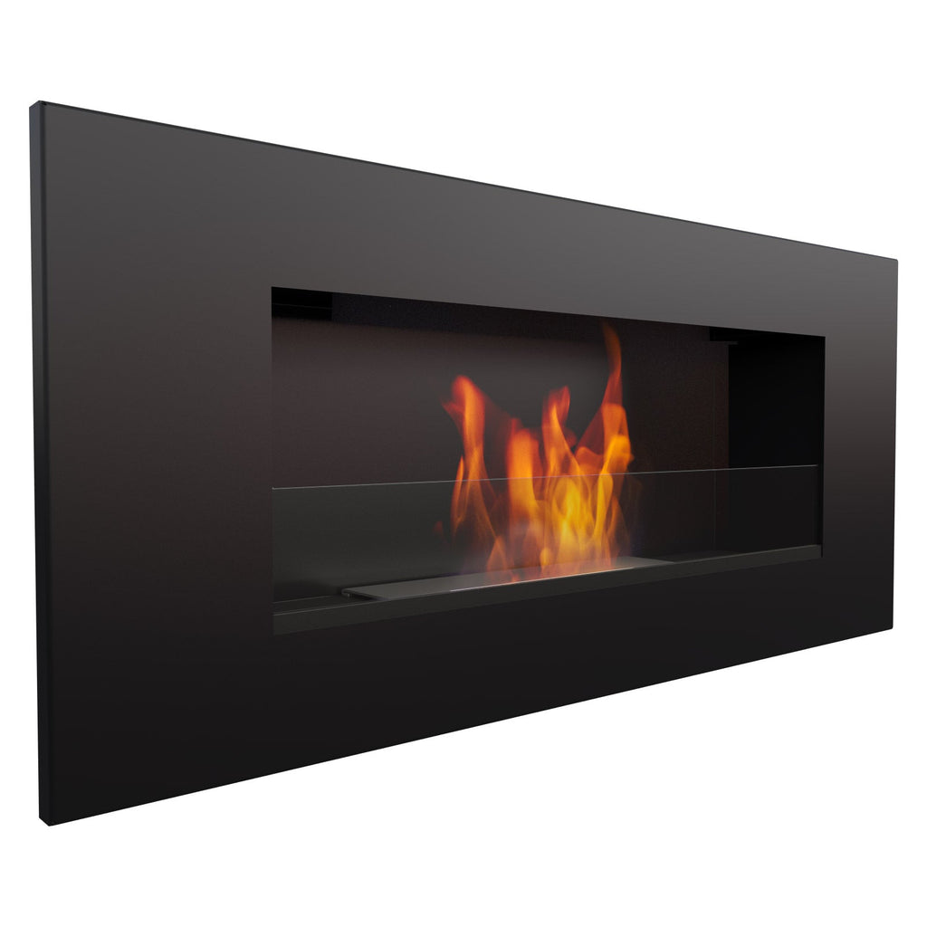 Camino a Bioetanolo da Parete 90x40 cm con Vetro o Senza Vetro Flig Huston 2 Nero