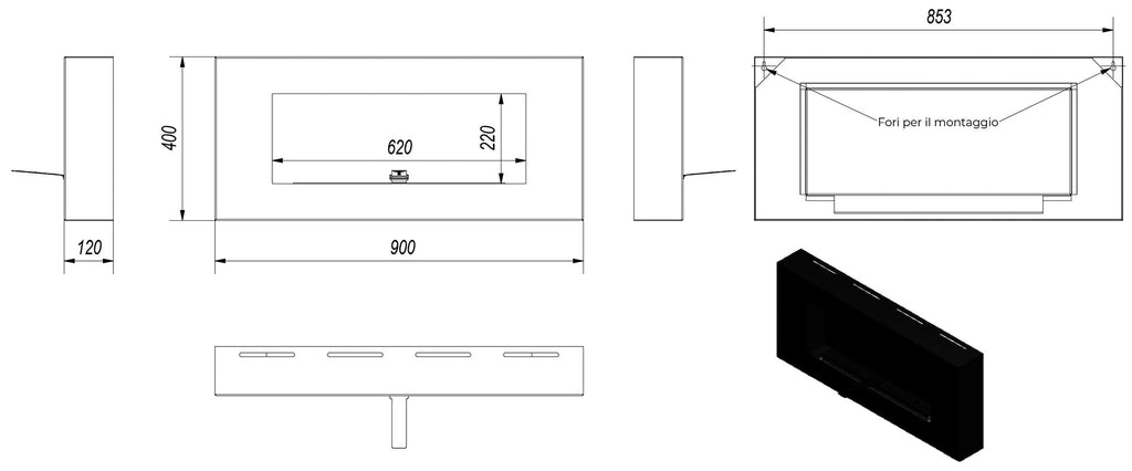 Camino a Bioetanolo da Parete 90x40 cm con Vetro o Senza Vetro Flig Kansas City
