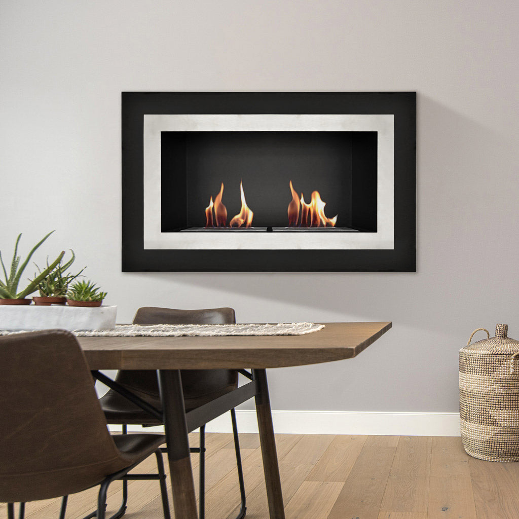 Camino a Bioetanolo da Parete 90x55x17 cm Taylor Nero e Acciaio
