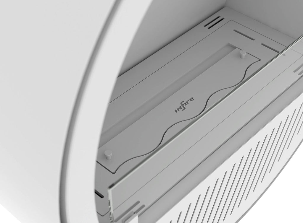 Un inserto in fibra di ceramica con una maglia aumenta la sicurezza e prolungando e ottimizzando il processo di combustione. La striscia scorrevole consente di regolare la dimensione della fiamma e di spegnere in sicurezza il camino, e la forma a onda crea un ulteriore effetto 3D. Il Camino ha un sistema di sfiato che impedisce l'accumulo di pressione sotto il bruciatore in caso di traboccamento di combustibile. Un serbatoio aggiuntivo sotto il bruciatore garantisce una maggiore sicurezza in caso di perdite di combustibile all'esterno della fornace. I supporti per i vetri sono abbinati al colore interno del bruciatore.
