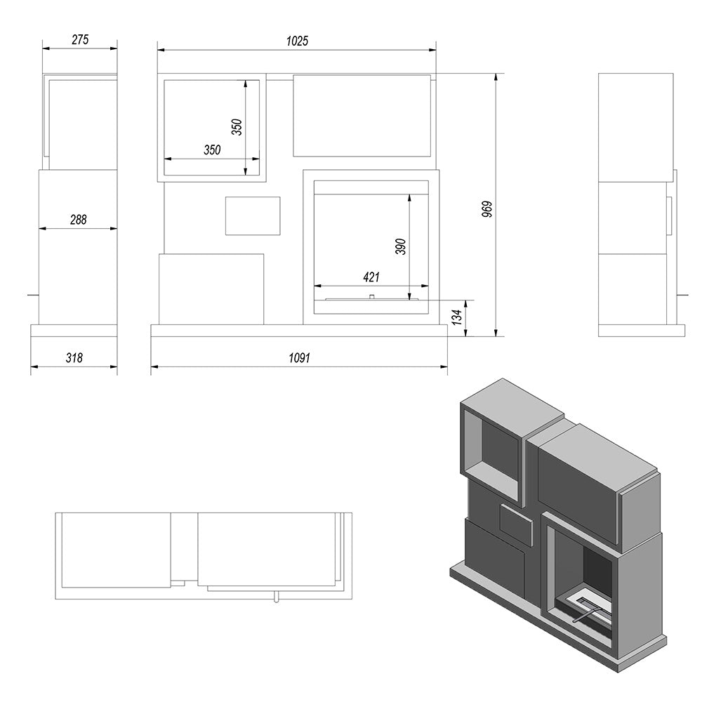 Caminetto a bioetanolo da pavimento adatto per qualunque tipo di ambiente sia classico che moderno. Facile da installare, questo biocamino è possibile appoggiarlo su qualsiasi parete piana, inoltre presenta uno scomparto che permette di appoggiare oggetti, foto, ecc., trasformandolo in un vero e proprio complemento d'arredo. Aggiungendo al bioetanolo qualche goccia di essenza profumata, il biocamino può essere utilizzato anche come diffusore di aromi.